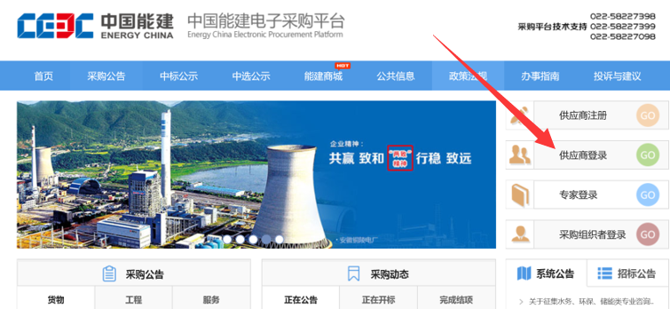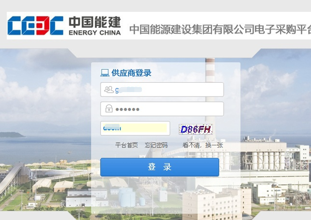 请使用供应商账号登陆能建平台 http://ec.ceec.net.cn