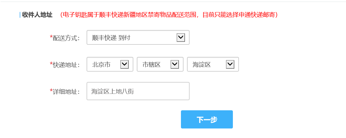 招商局数字证书支持顺丰快递,顺丰快递由客户承担费用