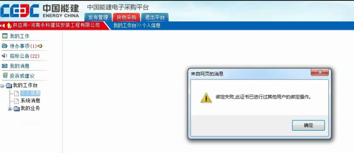 绑定失败:此证书已进行过其他用户的绑定操作