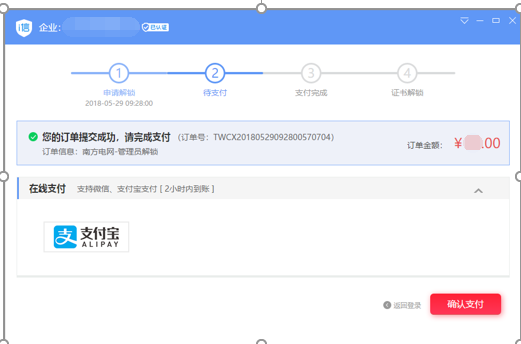 解锁费用:50元/次。先点击【支付宝】后,再点击【确认支付】,用支付宝扫二维码付款