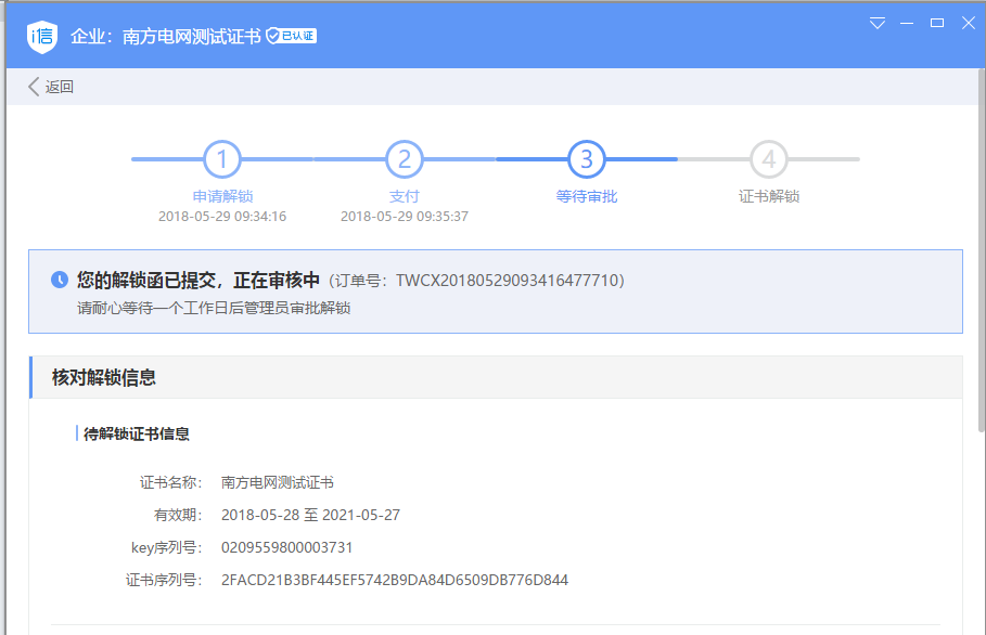 等待人工审批(如自助解锁,忽略此步操作)