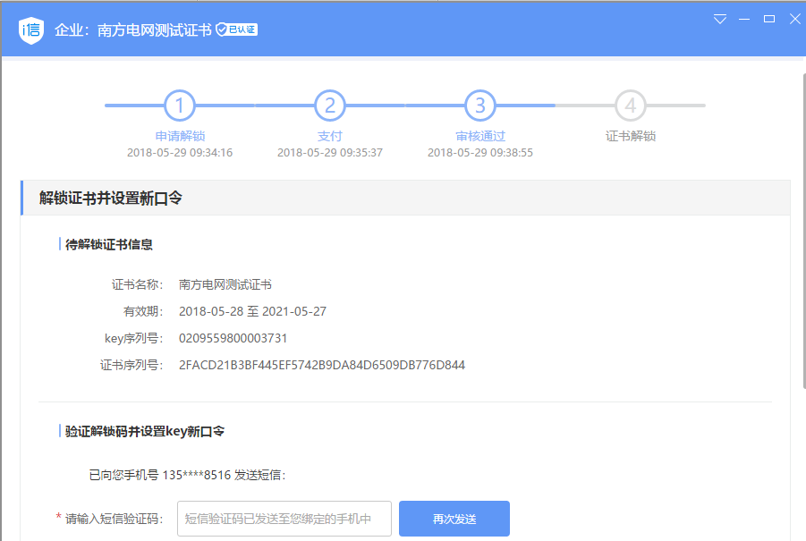 审核通过后,注册手机号会收到短信验证码,可以进行解锁操作
