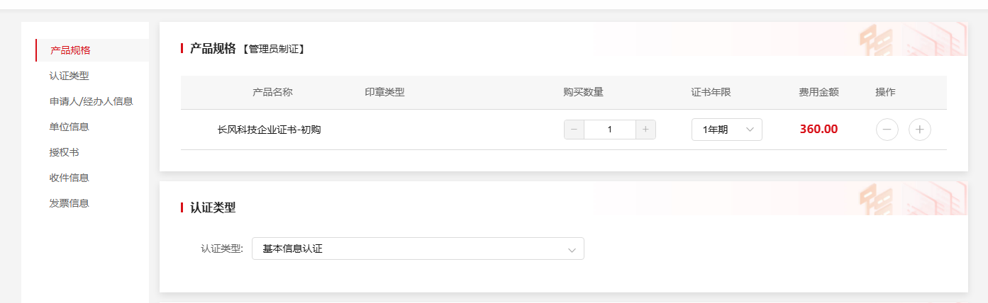长风科技数字证书+usbkey+企业认证,费用共计:360元/1年期证书;520元/2年期证书