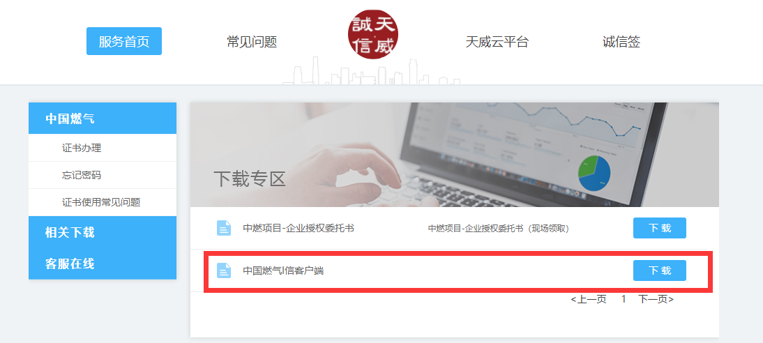 在线解锁功能要需安装驱动,点击网址http://www.4006663999.cn/,找到“中国燃气项目,点击相关下载-中国燃气I信客户端-进行下载并安装。
