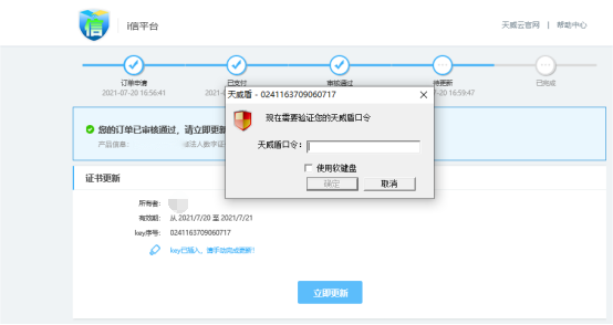 订单审核通过后,请及时下载证书,登录https://ixin.itrus.com.cn/—【订单信息】—点击【立即更新】—点击【更新证书】,请务必在60天内下载更新证书,超过60天后,将无法下载需重新申请购买。