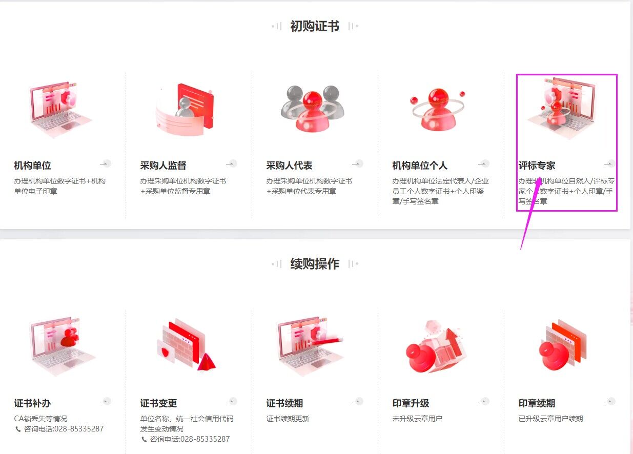 (3)专家证书姓名、签章变更:请吊销原证书,按照初始重新购买,订单注册提交网址:https://www.itruscloud.com/certsaas_cloud_portal/#/home/sichuan,在【初购证书】项,选择【专家证书】提交订单;订单完成后,会给您邮寄一个新U盾;