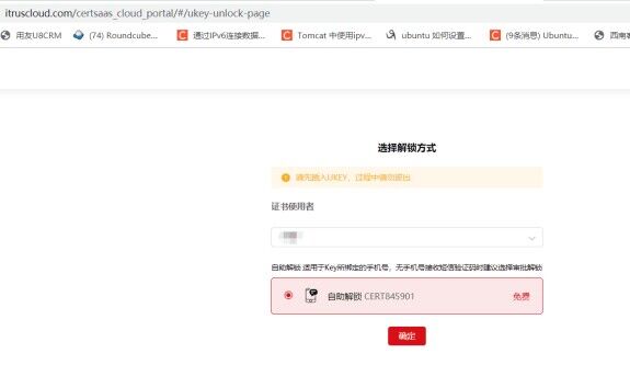 访问解锁地址:https://www.itruscloud.com/certsaas_cloud_console/#/unlock 选择当前电脑插入ukey对应的数字证书:
