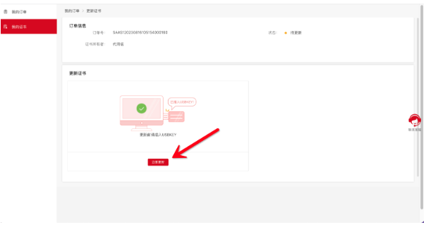 审核周期:2个工作日,提交订单后请关注订单状态。 订单审核通过后,请及时下载证书,登录https://www.itruscloud.com/home/#/signMountApp/login?appCode=ycd ,登录平台后点击【我的证书】—点击【更新】按钮—插入U盾点击【立即更新】