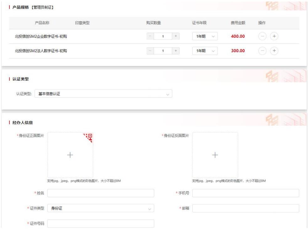 证书办理网址:https://www.itruscloud.com/certsaas_cloud_portal/#/createOrder?productCode=CERT825403,CERT626682 按照页面要求完整填写“经办人信息”、“法人信息”、“企业信息”、 “发票信息” 及“收件人地址”。其中“*”均为必填项。