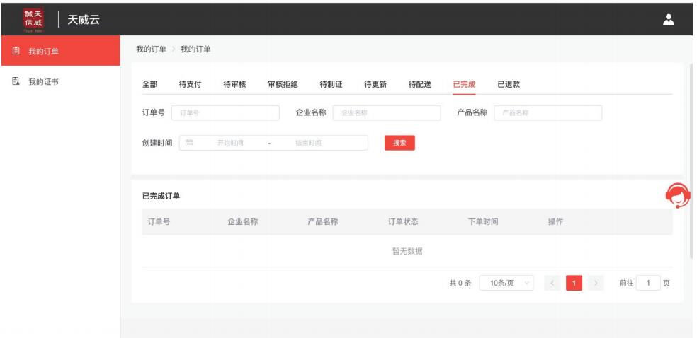 订单修改及查询网址:https://www.itruscloud.com/home/#/signMountApp/login?appCode=ycd,输入经办人的手机号及验证码登录平台(温馨提示:当时提交订单时接收短信验证码的手机号),点击【我的订单】,可查看当前企业订单状态。
