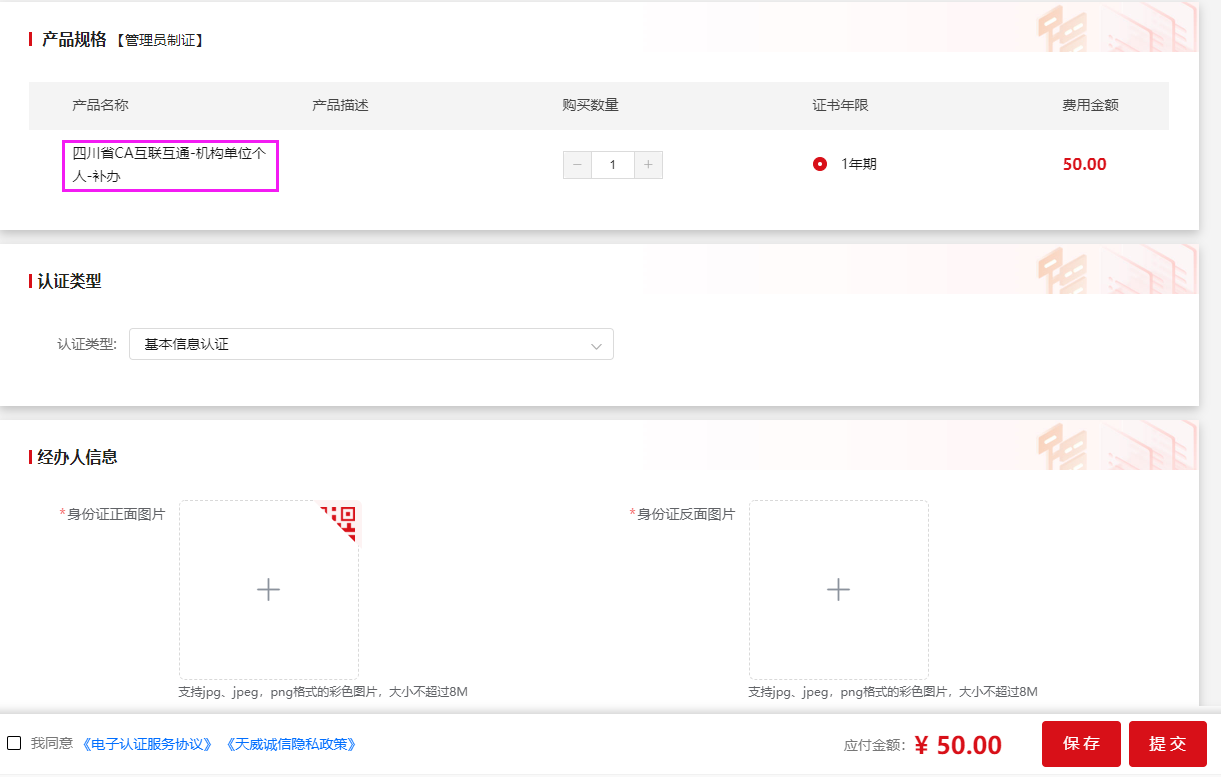 (2)机构单位证书个人证书丢失补办:吊销原证书【证书吊销后将无法使用,请您务必确认后谨慎操作!】,办理网址:https://www.itruscloud.com/certsaas_cloud_portal/#/createOrder?productCode=CERT731200,在线提交订单;