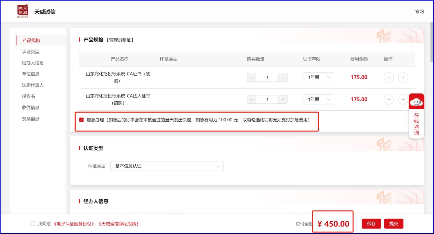 加急办理:若办理紧急,可在下单页面勾选“加急办理”,费用在原费用基础上多加100元,共450元。