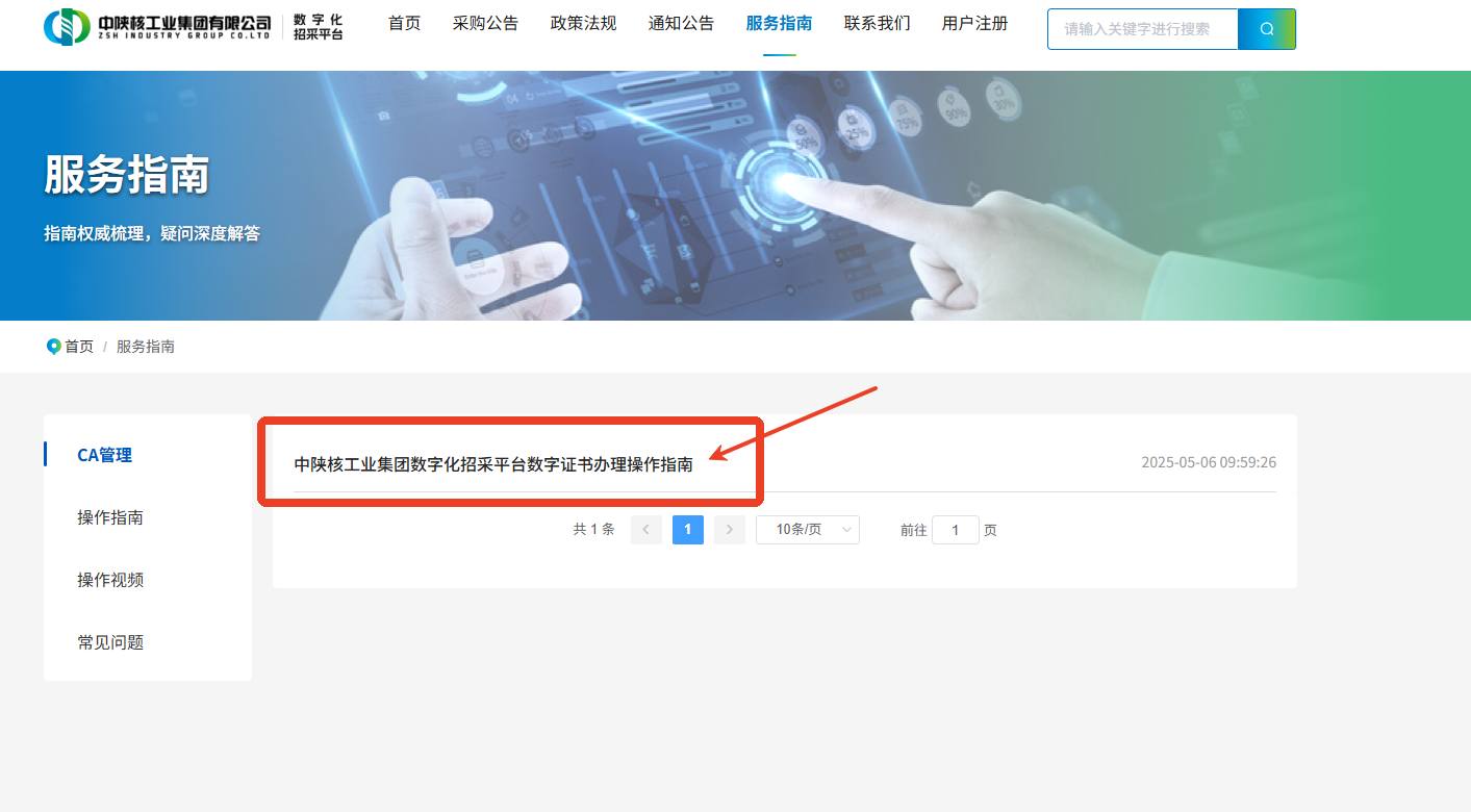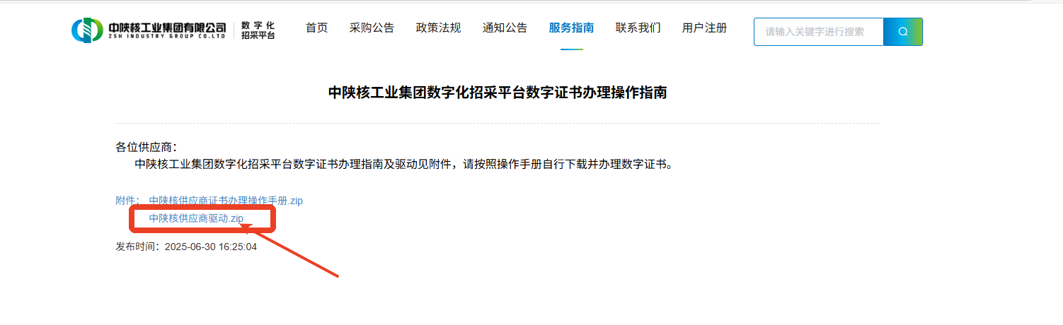 ,点击“中陕核工业集团数字化招采平台数字证书办理操作指南——中陕核供应商驱动.zip”