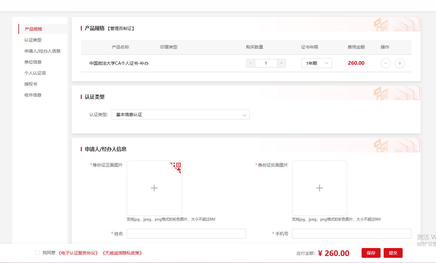 个人证书补办申请网址:https://www.itruscloud.com/certsaas_cloud_portal/#/createOrder?productCode=CERT494838