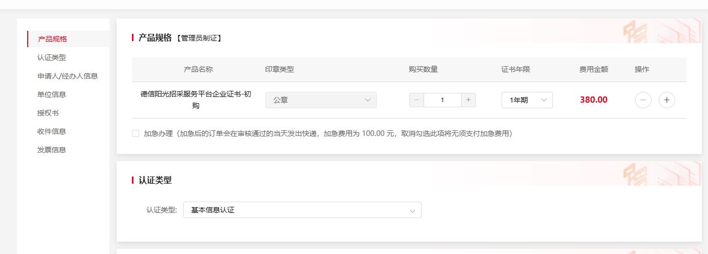 加急办理:如需加急勾选加急按钮,加急费用是100元。