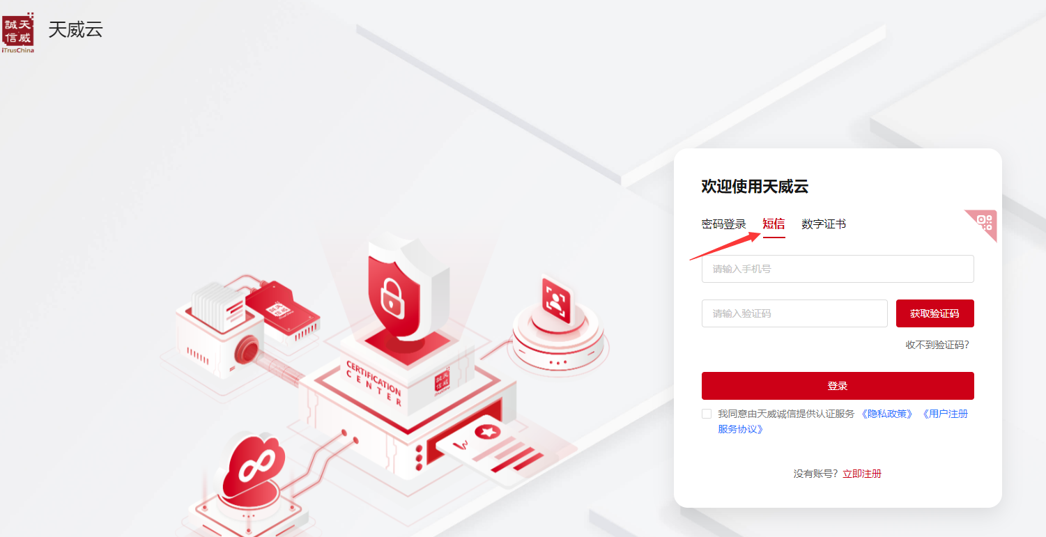 感谢您使用天威诚信数字证书,订单查询流程如下: 请点击:https://www.itruscloud.com/home/#/signMountApp/login?appCode=ycd ,输入证书办理的手机号(即经办人手机号)及验证码登录平台