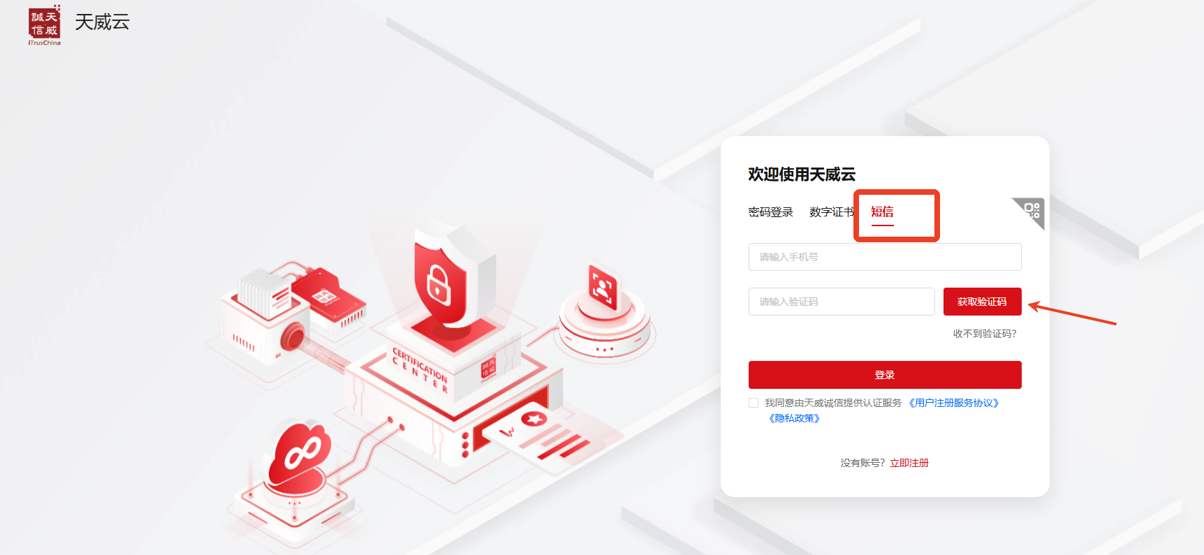 订单修改及查询网址:https://www.itruscloud.com/home/#/signMountApp/login?appCode=ycd,输入经办人的手机号及验证码登录平台,(温馨提示:当时提交订单时接收短信验证码的手机号)点击【我的订单】,可查看当前企业订单状态