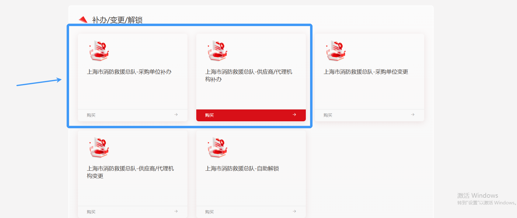 证书丢失补办流程办理网址:https://www.itruscloud.com/certsaas_cloud_portal/#/home/projectDetail/shsxfjyzd,根据个人实际需求选择,采购单位补办、供应商/代理机构数字证书遗失补办,可参考下图: