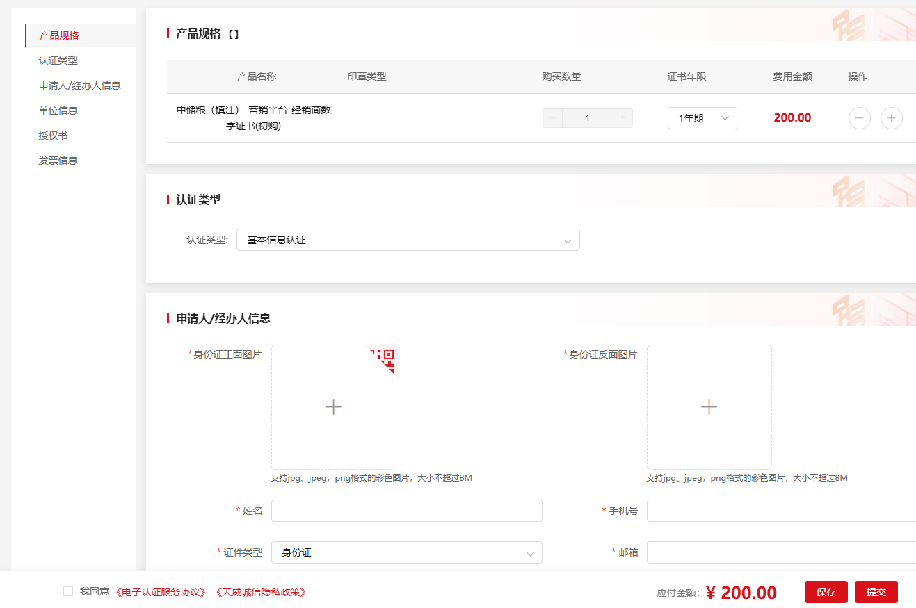 申请数字证书前,请确认已获得中储粮油脂工业镇江有限公司平台供应商资格。
