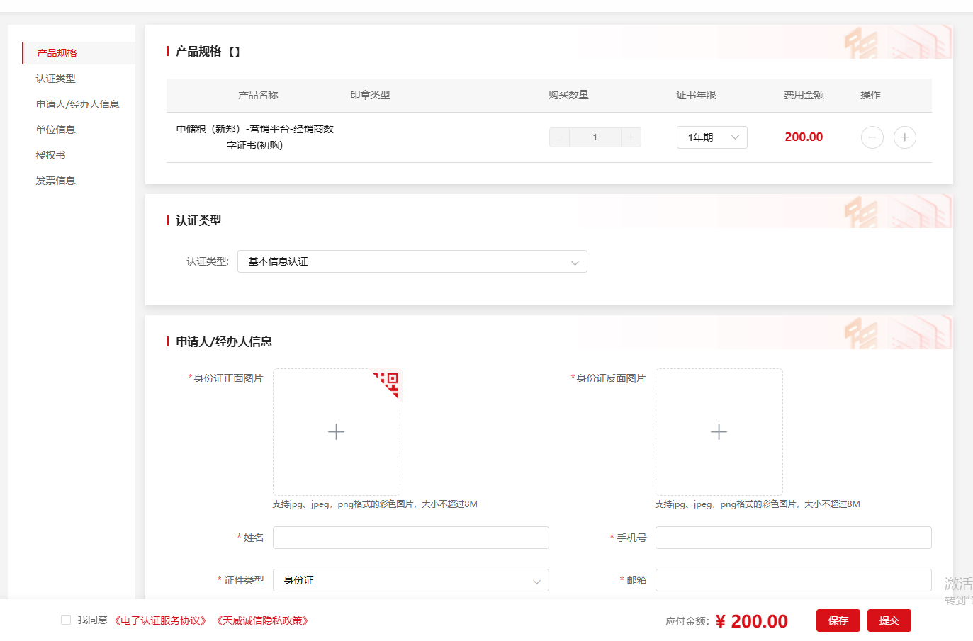 注意事项: 订单完成后,证书直接推送到中储粮油脂工业平台,正常使用即可。