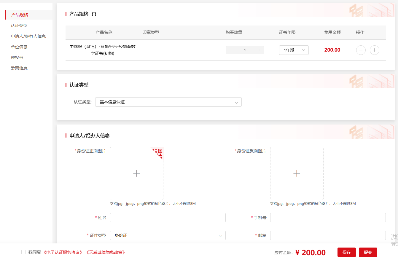 注意事项: 订单完成后,证书直接推送到中储粮油脂工业平台,正常使用即可。