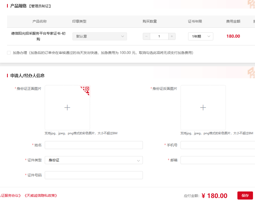 加急办理:如需加急勾选加急按钮,加急费用是100元。