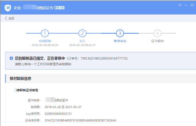 等待人工审批(如自助解锁,忽略此步操作)