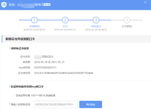 审核通过后,注册手机号会收到短信验证码,可以进行解锁操作