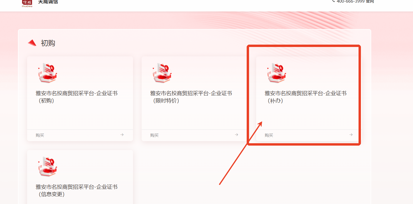 感谢您购买天威诚信公司雅安名投商贸数字证书。请您按照下方指引完成在线订单提交和付款。