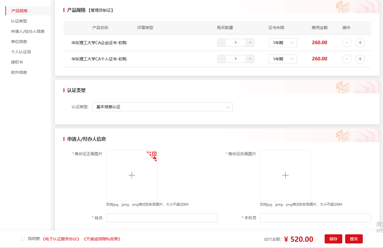 企业证书+个人证书在线办理方式:https://www.itruscloud.com/certsaas_cloud_portal/#/createOrder?productCode=CERT691091,CERT600462注:初次办理证书请办理一套(企业证书+授权人证书)