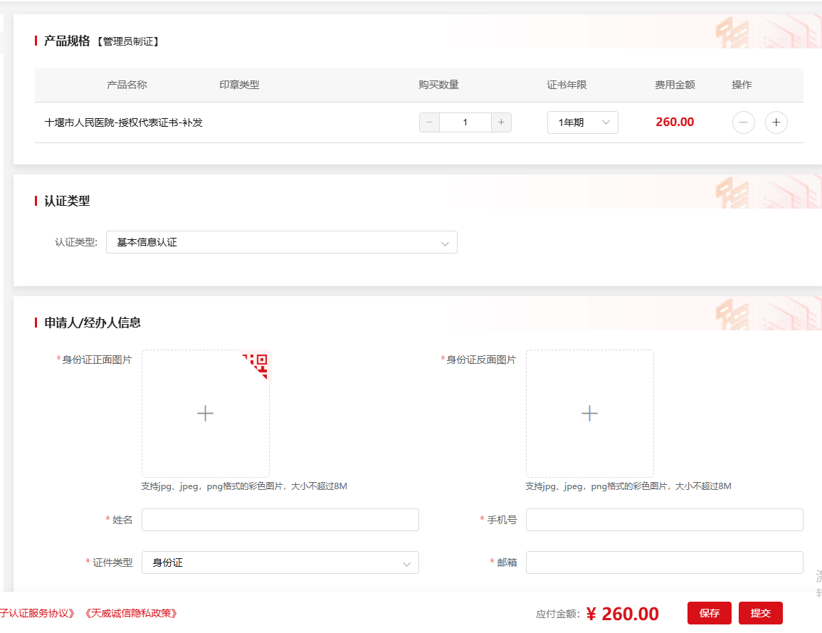 授权代表证书补办申请网址:https://www.itruscloud.com/certsaas_cloud_portal/#/createOrder?productCode=CERT372739
